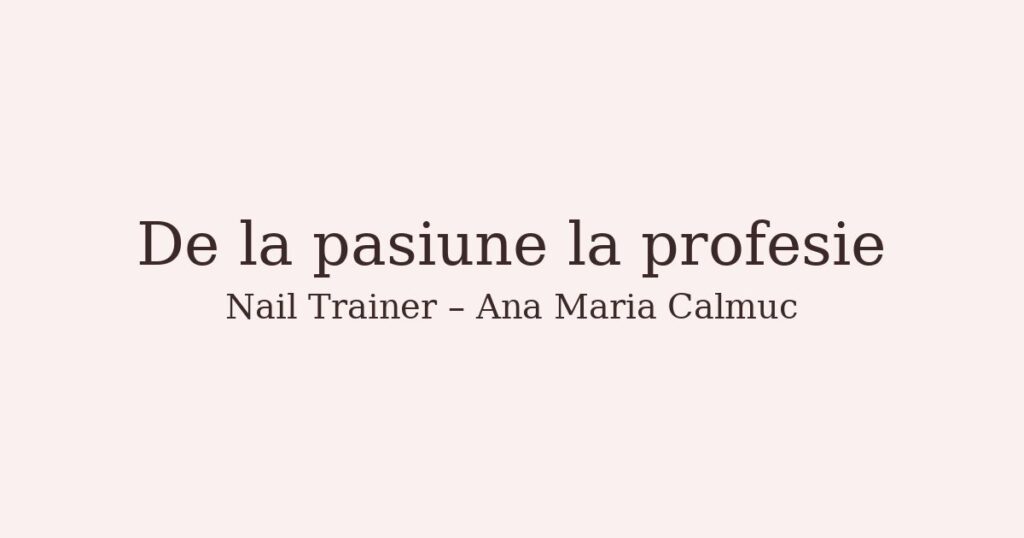 Mă numesc Ana Maria Calmuc și sunt Nail Trainer cu peste 17 ani de experiență în domeniu. Am început acest drum cu o pasiune uriașă pentru frumos și o curiozitate care nu m-a lăsat să mă opresc din învățat. În timp, această pasiune a devenit o misiune: să formez tehnicieni bine pregătiți, încrezători și pasionați.